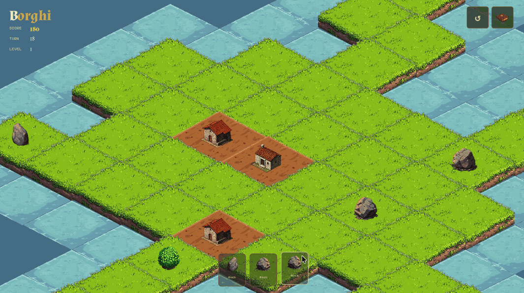 Place bushes, rocks, and humble structures — then watch them evolve into farms, houses, piazzas, and beyond. Each merge unlocks new possibilities and brings your borgo to life.